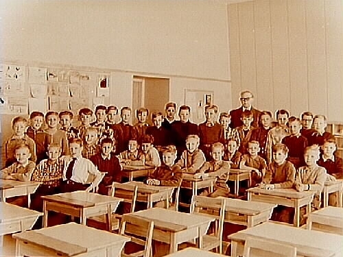 Vasaskolan, klassrumsinteriör, 34 pojkar med lärare David Wählby, klass 4G, sal 13.