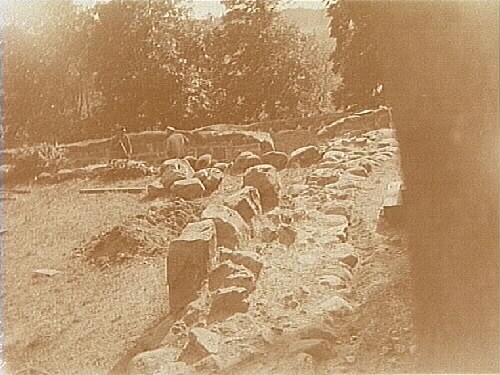 Titel: Riseberga klosterruin, korsgången mot norr. Bilden tagen från öster, under konservering.