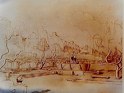 Förslag till Stortorgets utsmyckning, skiss av arkitekt J. Ahlbom, Vallhallavägen 15-17, Stockholm och skulptör R. Kjellberg.