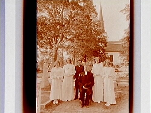 Konfirmander, 4 flickor, 5 pojkar och kyrkoherde Skjöldebrand.