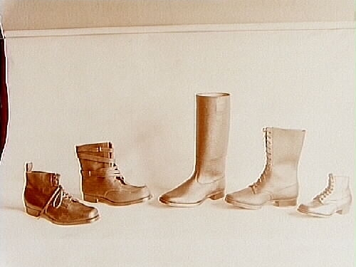 C.A. Jonssons Skofabrik, skor: en stövel och fem kängor.
