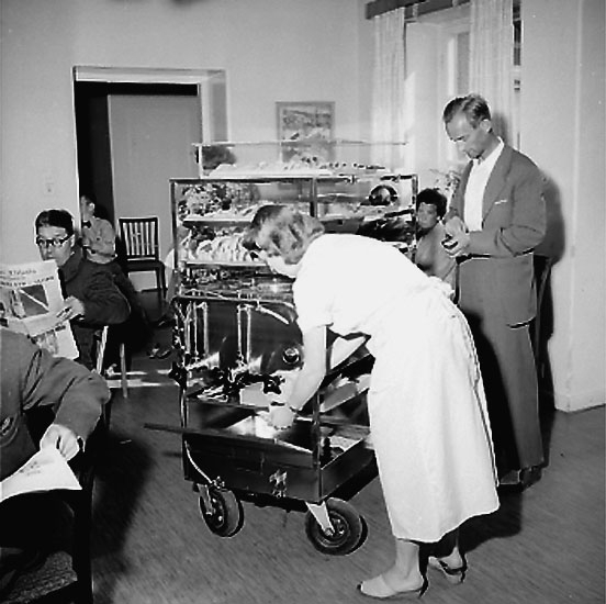 Lasarettet, interiör, kaffevagn, kaffeförsäljning.