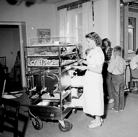 Lasarettet, interiör, kaffevagn, kaffeförsäljning.