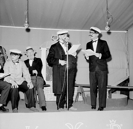 Stora Hotellet, interiör, grupp på scenen. Fagersta Forum.