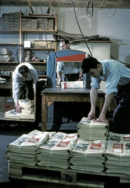 Pallastning av ICA-Kuriren hos ICA-förlaget i Västerås 1959.
