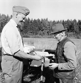 Posten lämnas vid Singö gård av lantbrevbärare Erik Johansson.