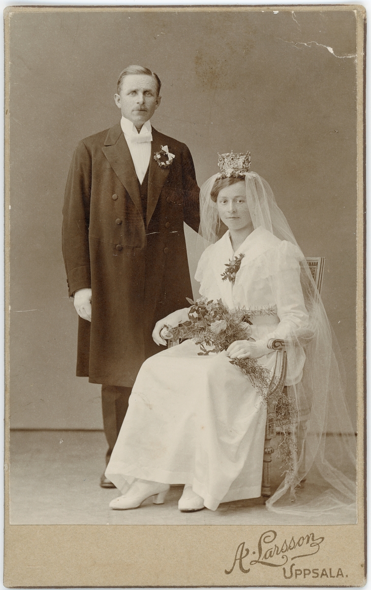 Kabinettsfotografi - brudpar, Uppsala 1918