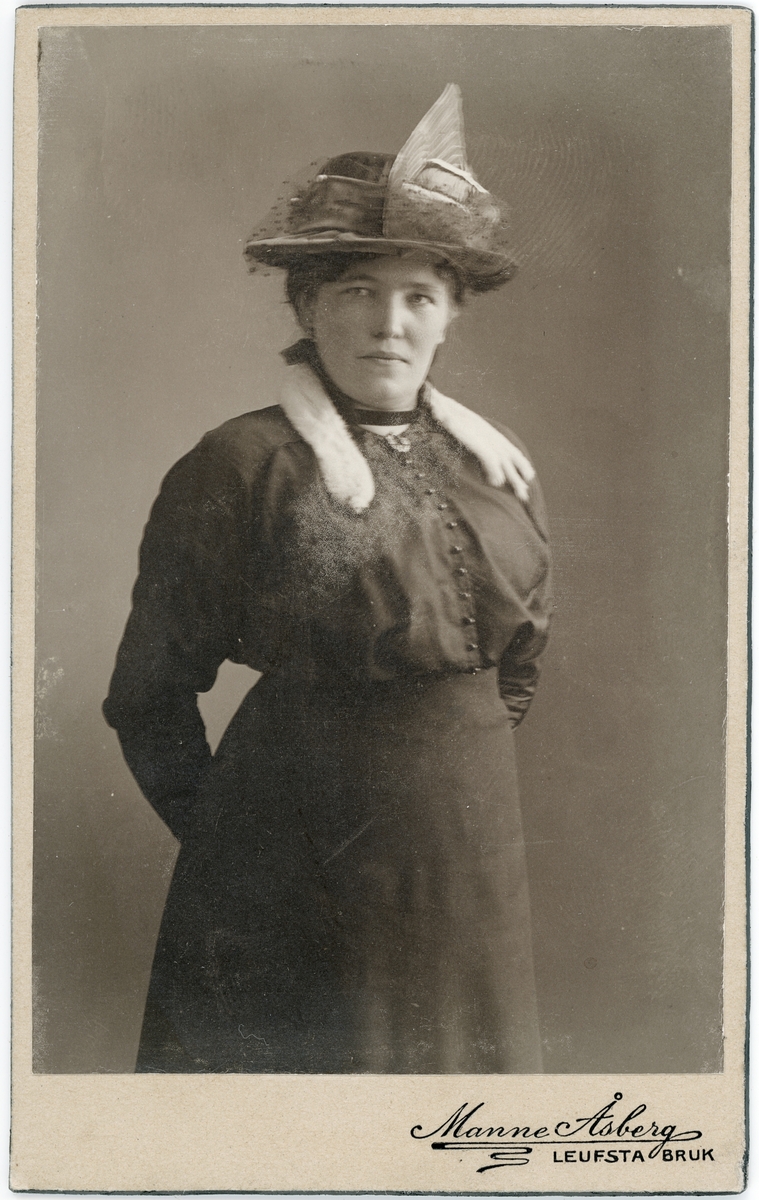 Kabinettsfotografi - kvinna med hatt, Lövstabruk 1920-tal
