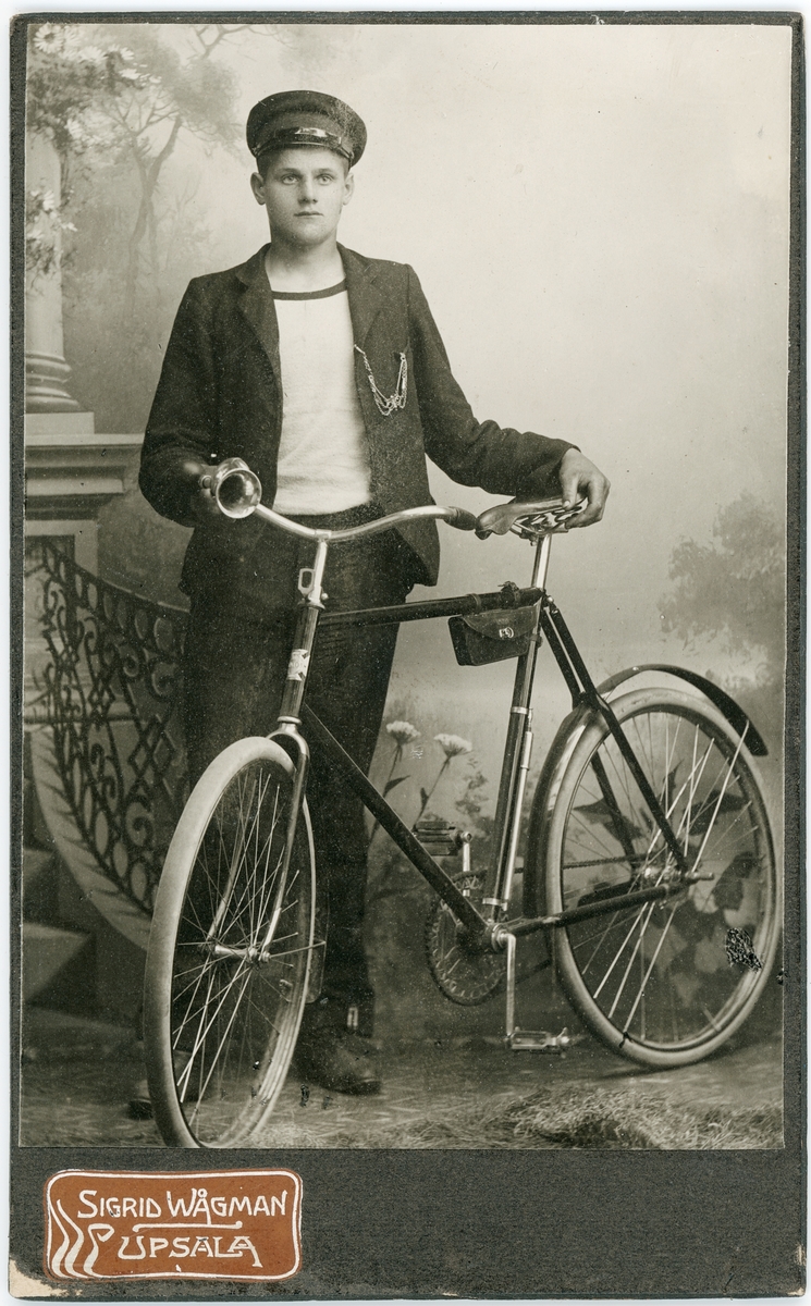 Kabinettsfotografi - ung man med cykel, Uppsala