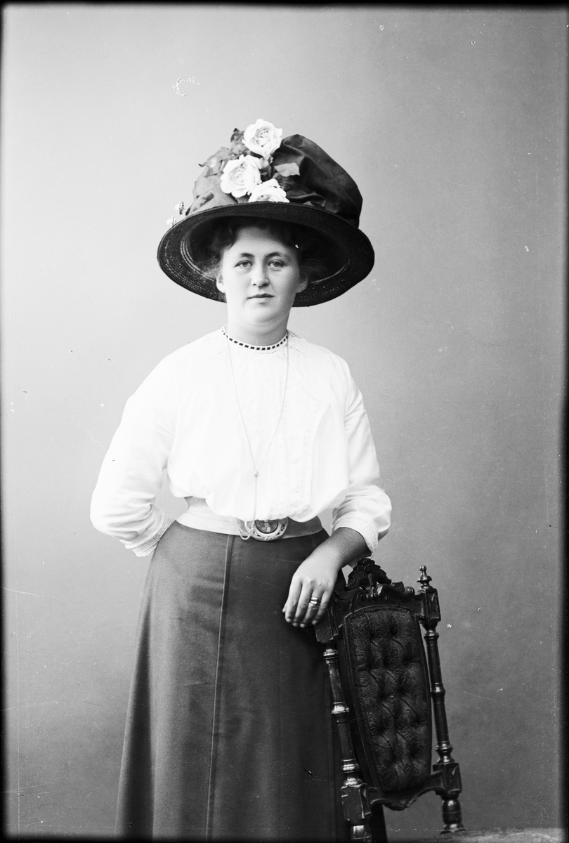 Ateljéporträtt - kvinna klädd i hatt, Östhammar, Uppland