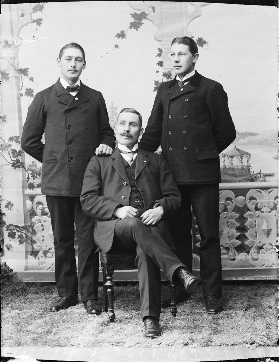 Ateljéporträtt - tre män, Östhammar, Uppland