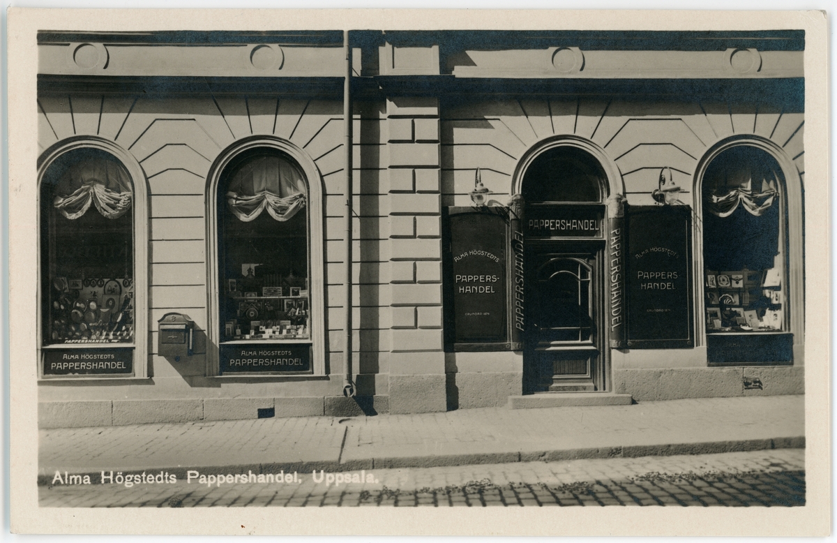 Brevkort - Alma Högstedts Pappershandel, Drottninggatan 1, Uppsala