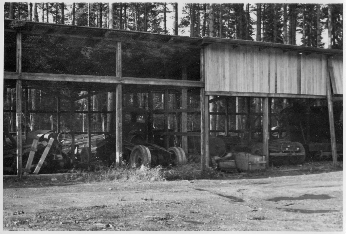 Vägstation Z10, Lit. Förrådsbyggnad (öppet skjul) med delar till väghållningsmaskiner, bland annat väghyvel, "skrot".