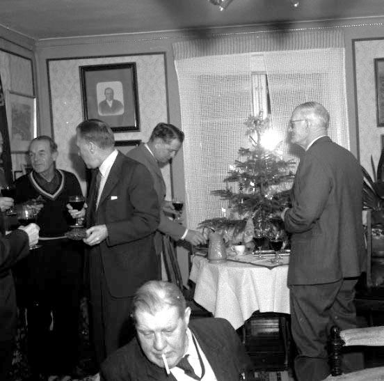Titel: Skara. Idrott: Gamla SI:are på julgransröstning hos "Moppe" 11/1 1961. Foto: Stig Rehn 5.