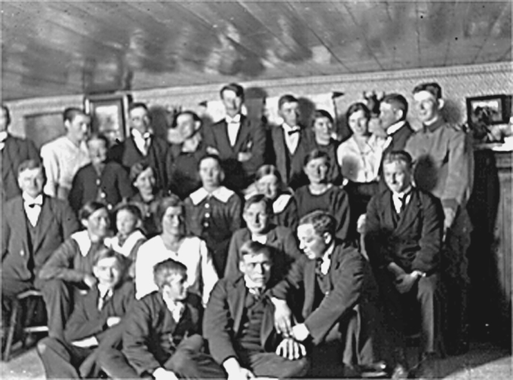 I översta raden: bl a Kristina Seger, Karl Johansson "Karl i Röckla", Lisa Lööf?, Anna Thräff, Oskar Larsson i Pickagården, Magnus Dahlberg.