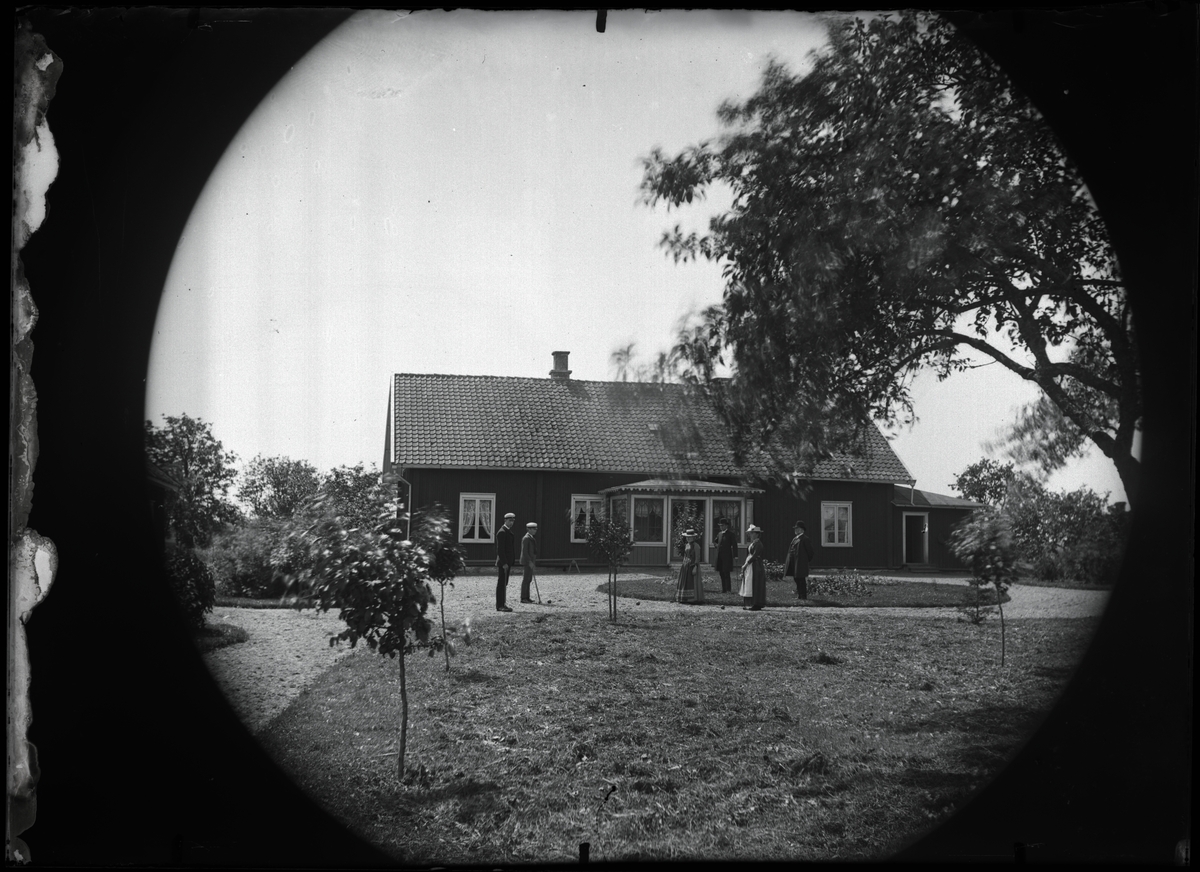 Familj framför bostadshus