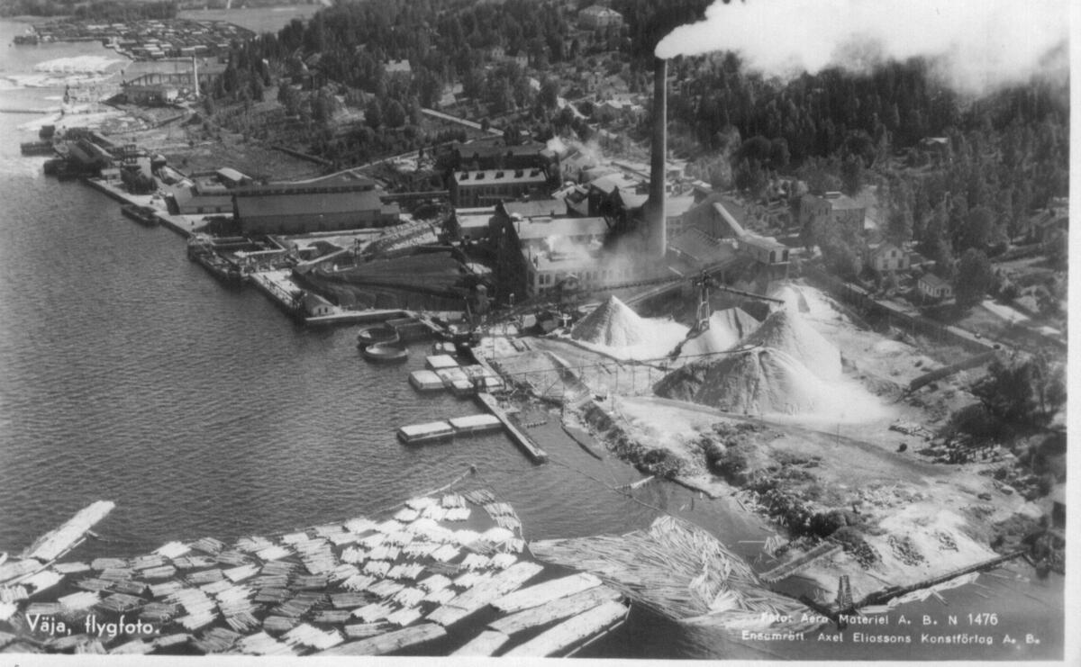 Väja fabrik. Fabriken i Dynäs. Efter riksväg 90 mellan Kramfors och Bollstabruk.