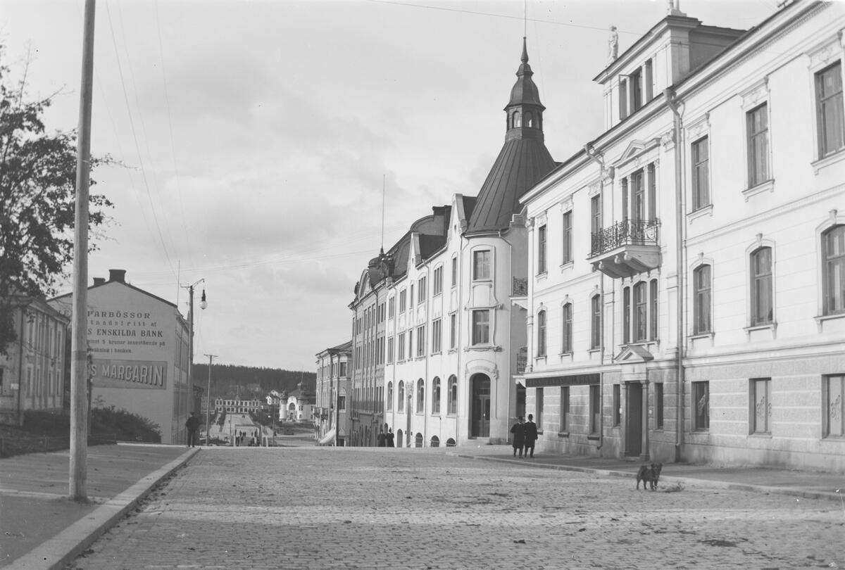 En gatuvy över Nybrogatan ned mot järnvägsstationen.