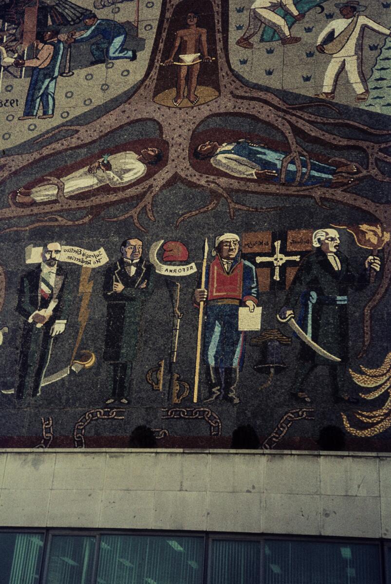 Väggmålning på en byggnad i Ciudad Universitaria. Mèxico City.