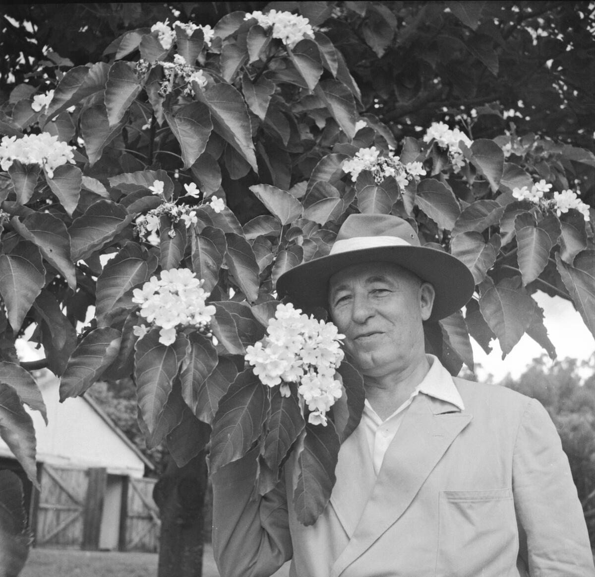 En man vid ett blommande träd. Nyasaland (Idag Malawi). Afrika.