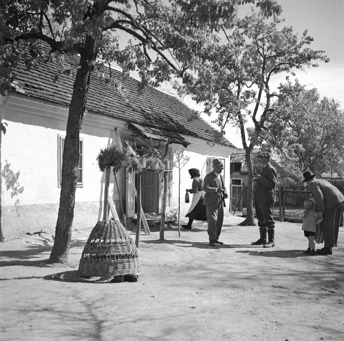 Utanför ett hus i Vörs. Tjeckoslovakien-Ungern-Österrike 1935.