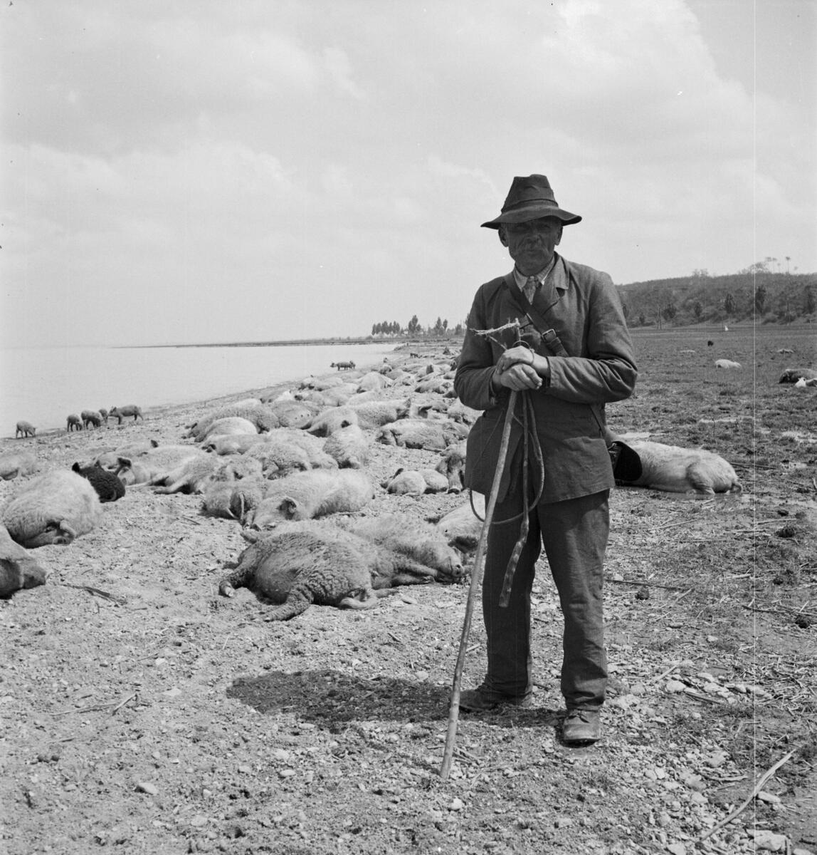 En svinaherde med sina svin. Vid Balatonsjöns strand, Ungern. Tjeckoslovakien-Ungern-Österrike 1935.