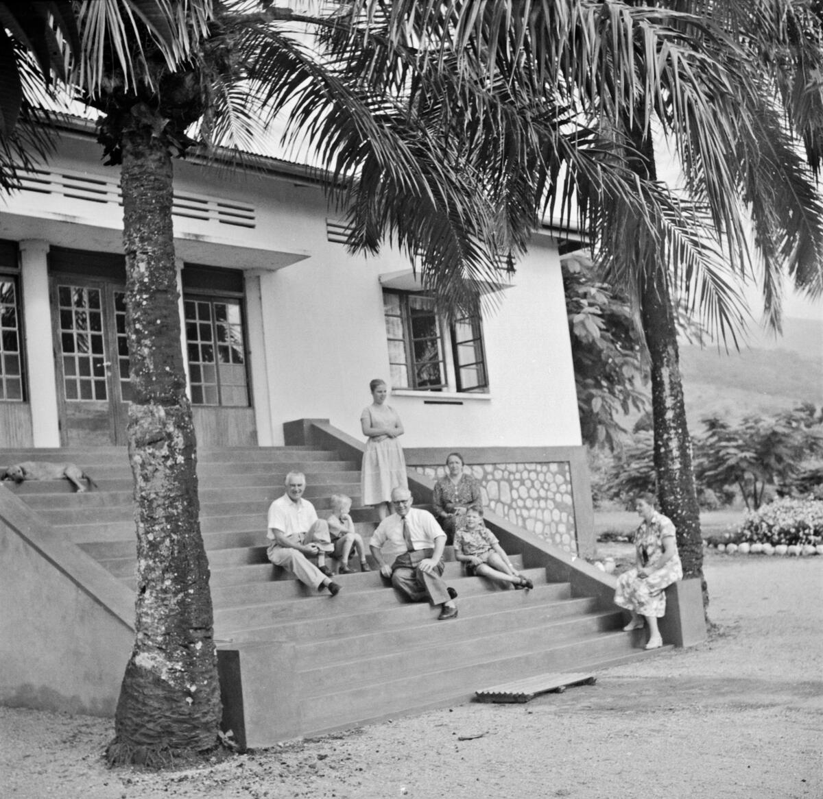 På en trappa till ett hus i Nyasaland. Nyasaland (Idag Malawi). Afrika.