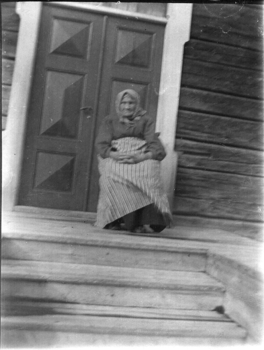 Bildens ägare: Anna-Lisa Danielsson, Långsele.; Anna-Greta Elidotter, \"Mocka\" från Mo, Junsele socken. Anna-Lisas farfars mor. Hon föddes omkring 1820 och blev 94 år.