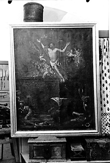 Målning "Uppstigandet ur graven", före renoveringen.