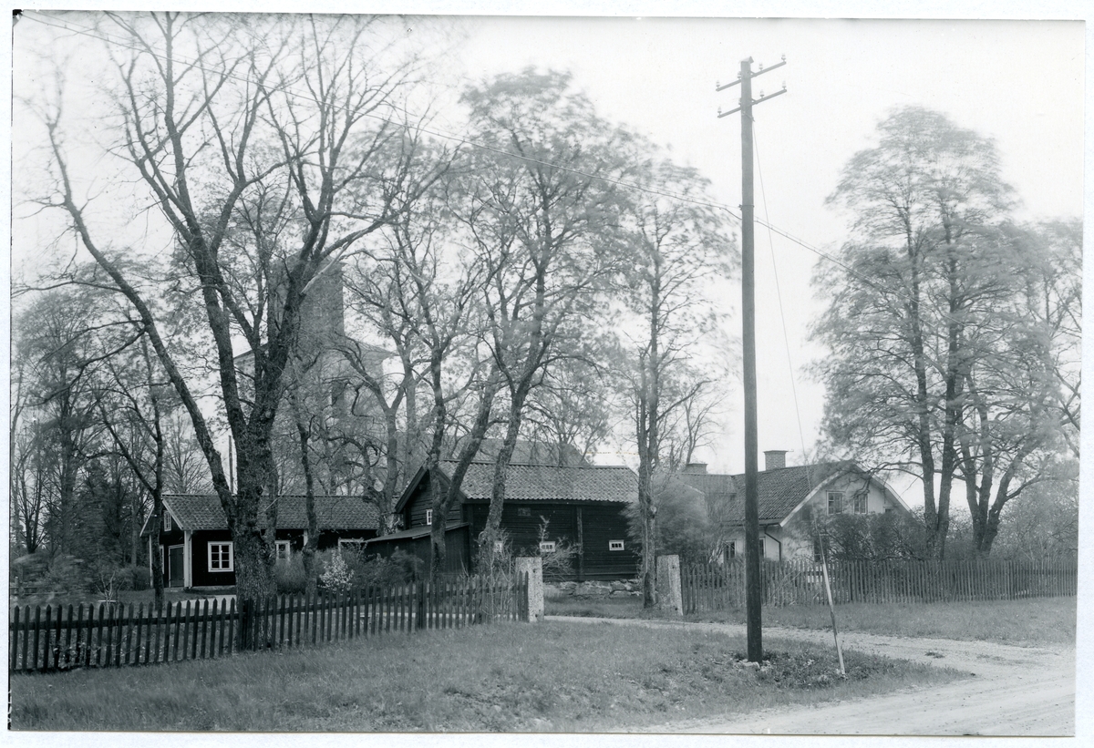 Tortuna prästgård, med kyrkan i bakgrunden, 1942.