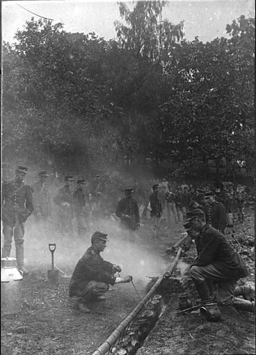 Matlagning i kokgropar vid Salbohed, Västmanlands regemente.