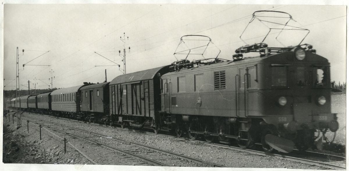 Snälltåg vid Tortuna järnvägsstation 1947.