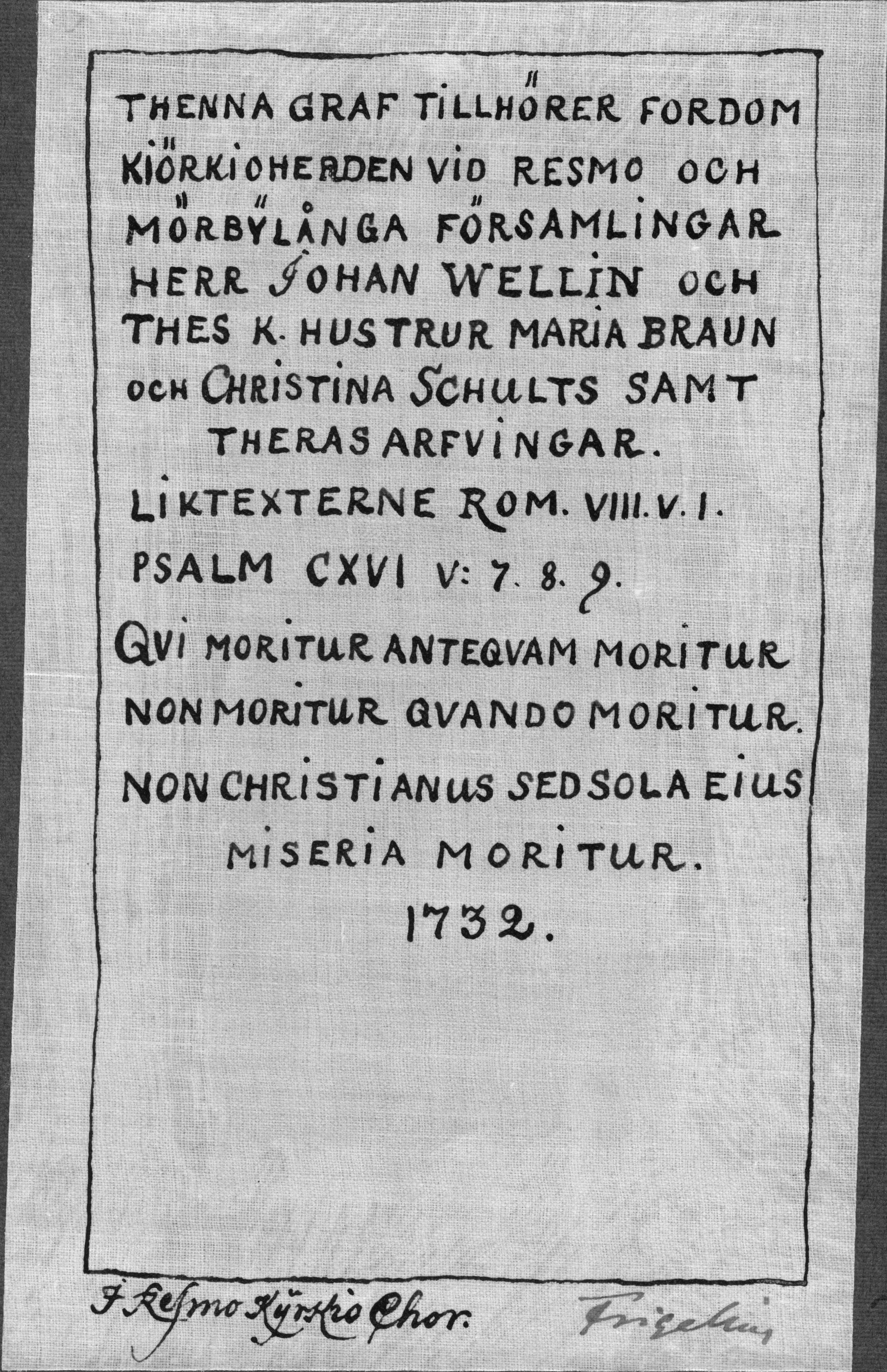 Beskrivning: Teckning av gravhäll. Kopia efter Frigelius. Kalmar.