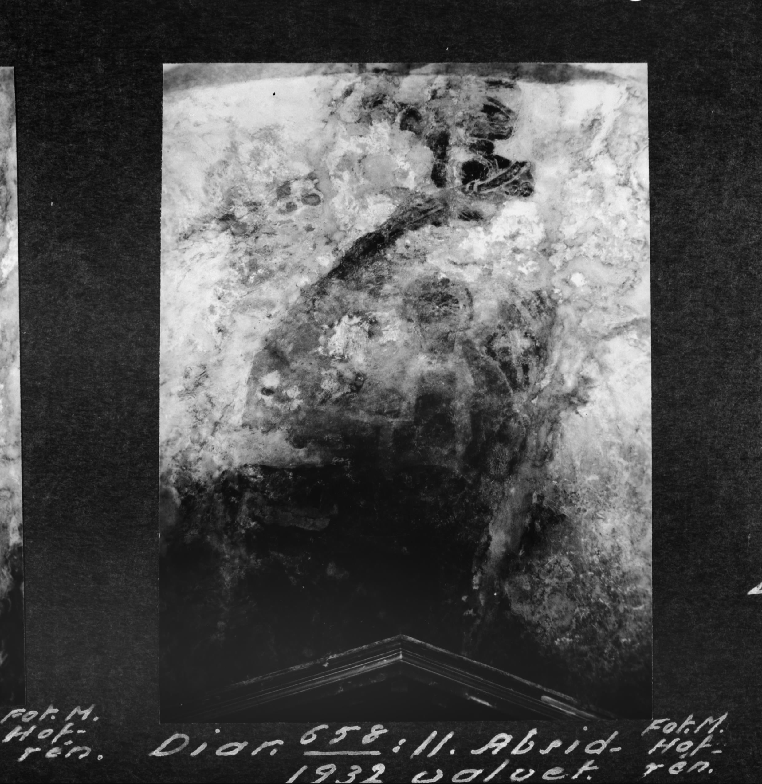 Beskrivning: Absidvalvet före konservering.