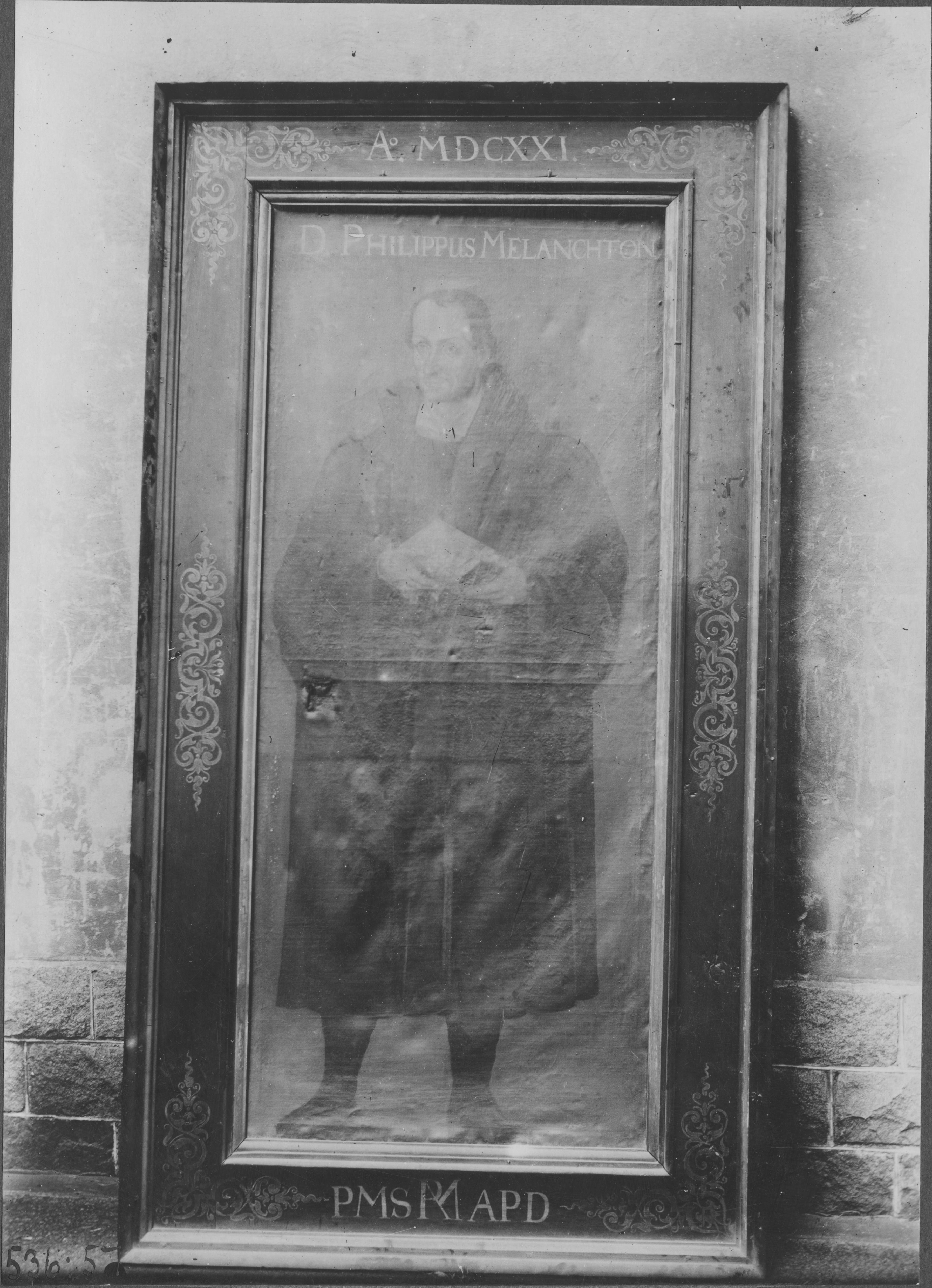 Beskrivning: Porträtt föreställande Philip Melanchton. Skänkt 1621 av Peder Mattsson (Stiernfelt). Före restaurering.