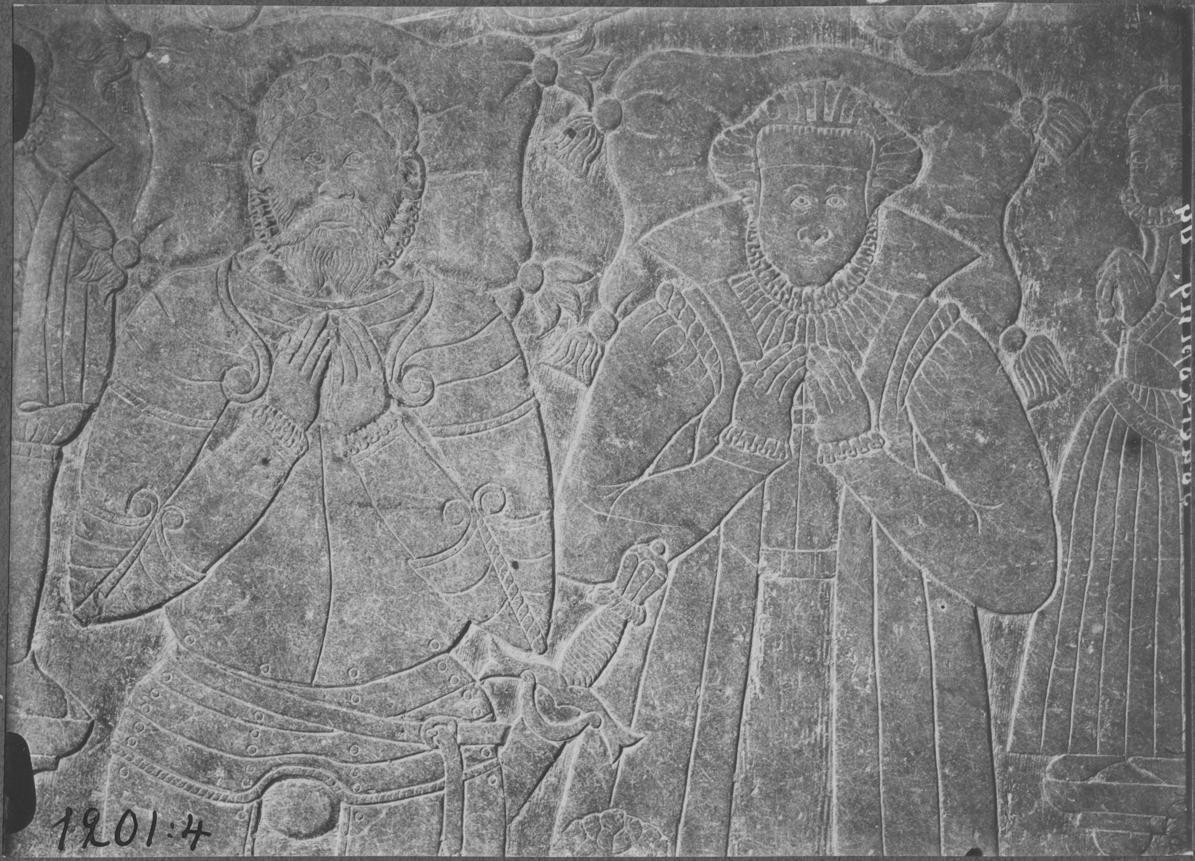 Beskrivning: Beskrivning: Gravsten för Karl Holgersson Gera, död 1566 och Kristina Bengtsdotter Färla, död 1560. Detalj.