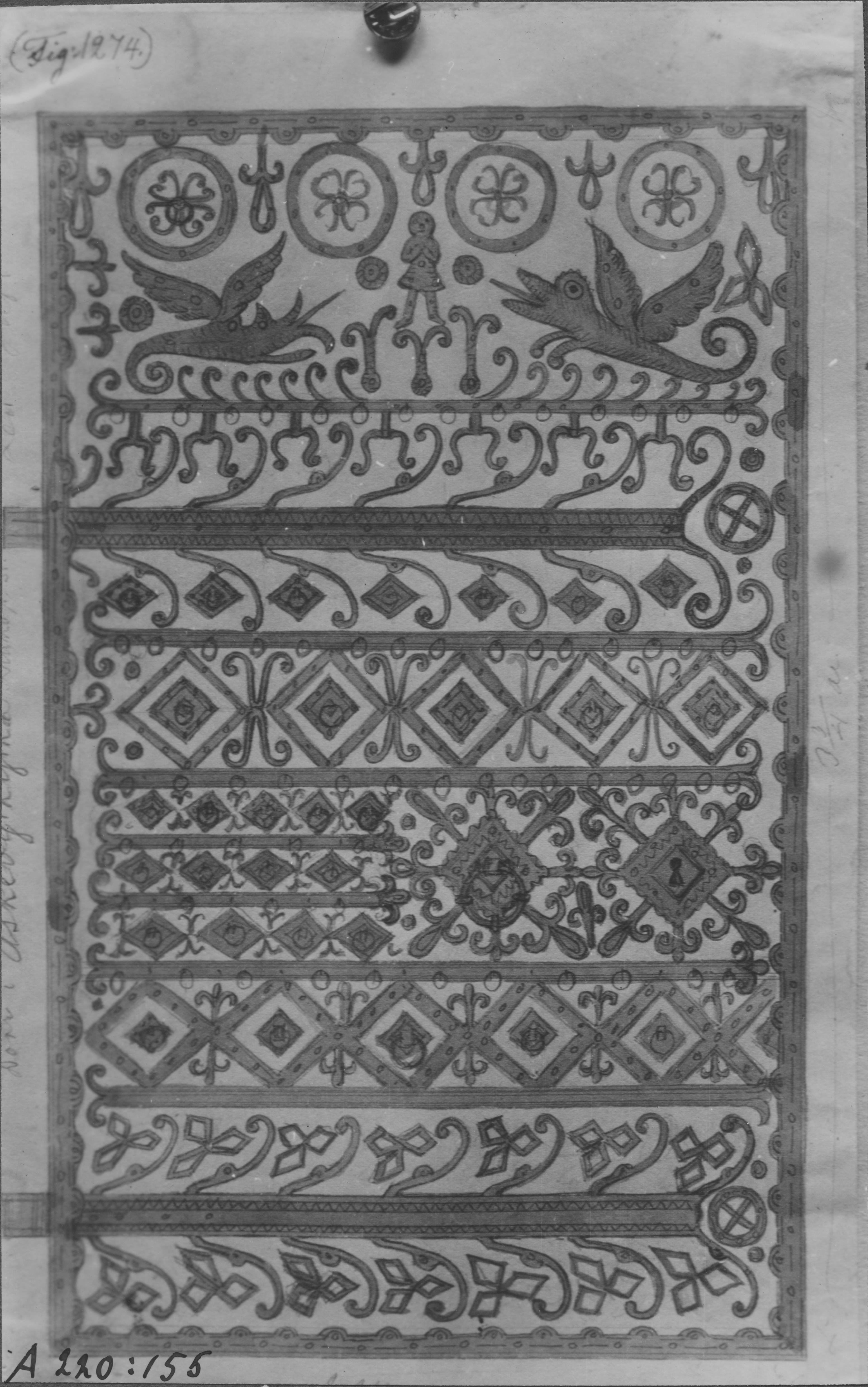 Beskrivning: Teckning föreställande dörr med järnbeslag. Uppges felaktigt på Mandelgrens teckning som dörr från Askeby kyrka, skall vara Asby.