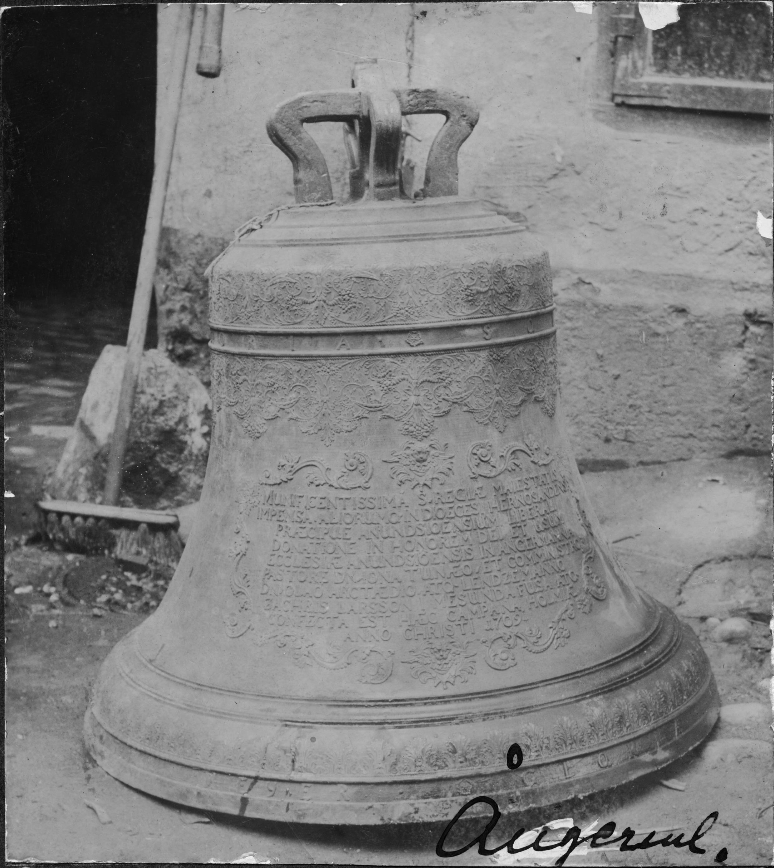 Beskrivning: Kyrkklocka. "Lillklockan nedsmält 1899".