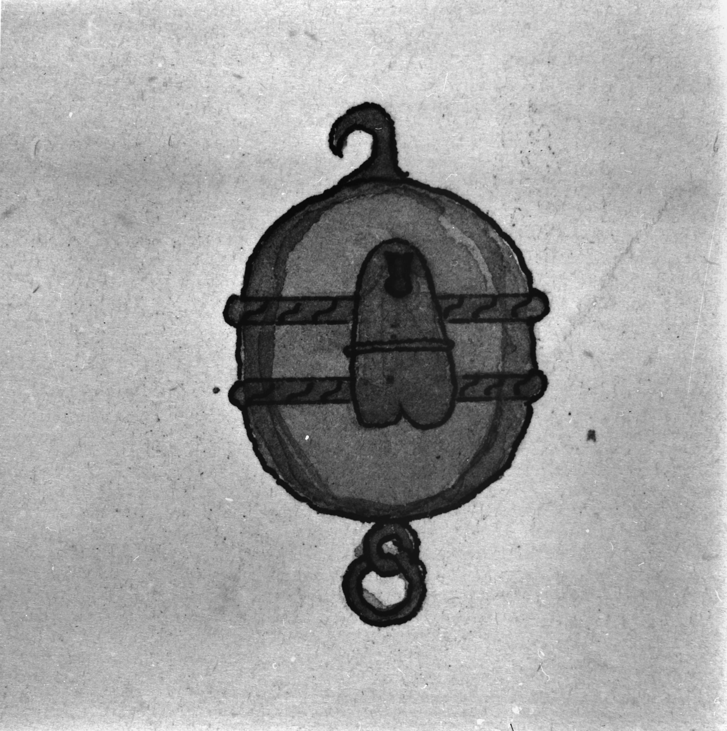 Beskrivning: Teckning föreställande sparbössa av koppar, av H. A. R. Sidén 1873.