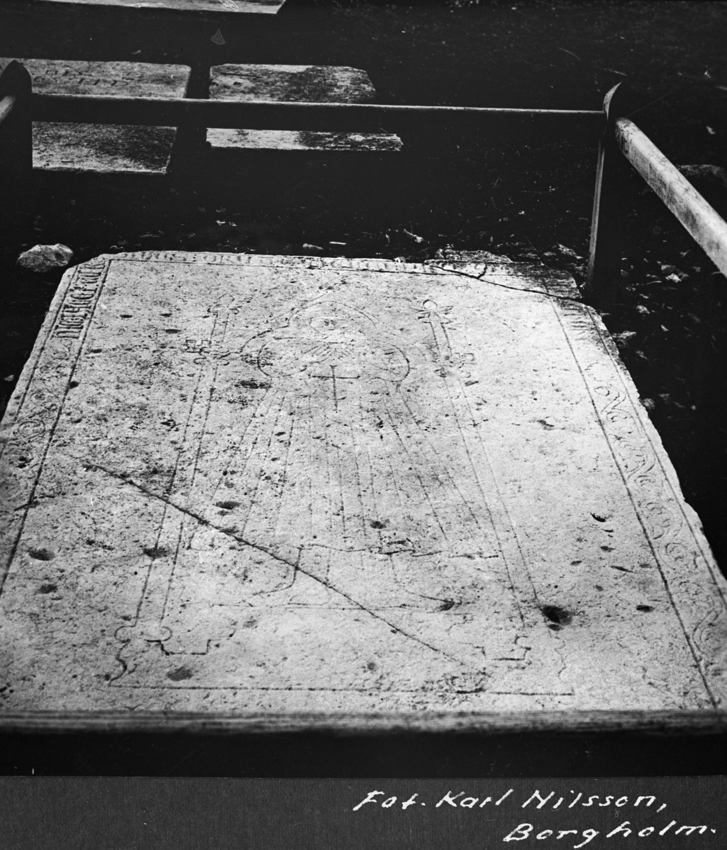Beskrivning: Gravhäll från 1300-talets början över Tyrgils, förmodligen kyrkoherde i Källa.