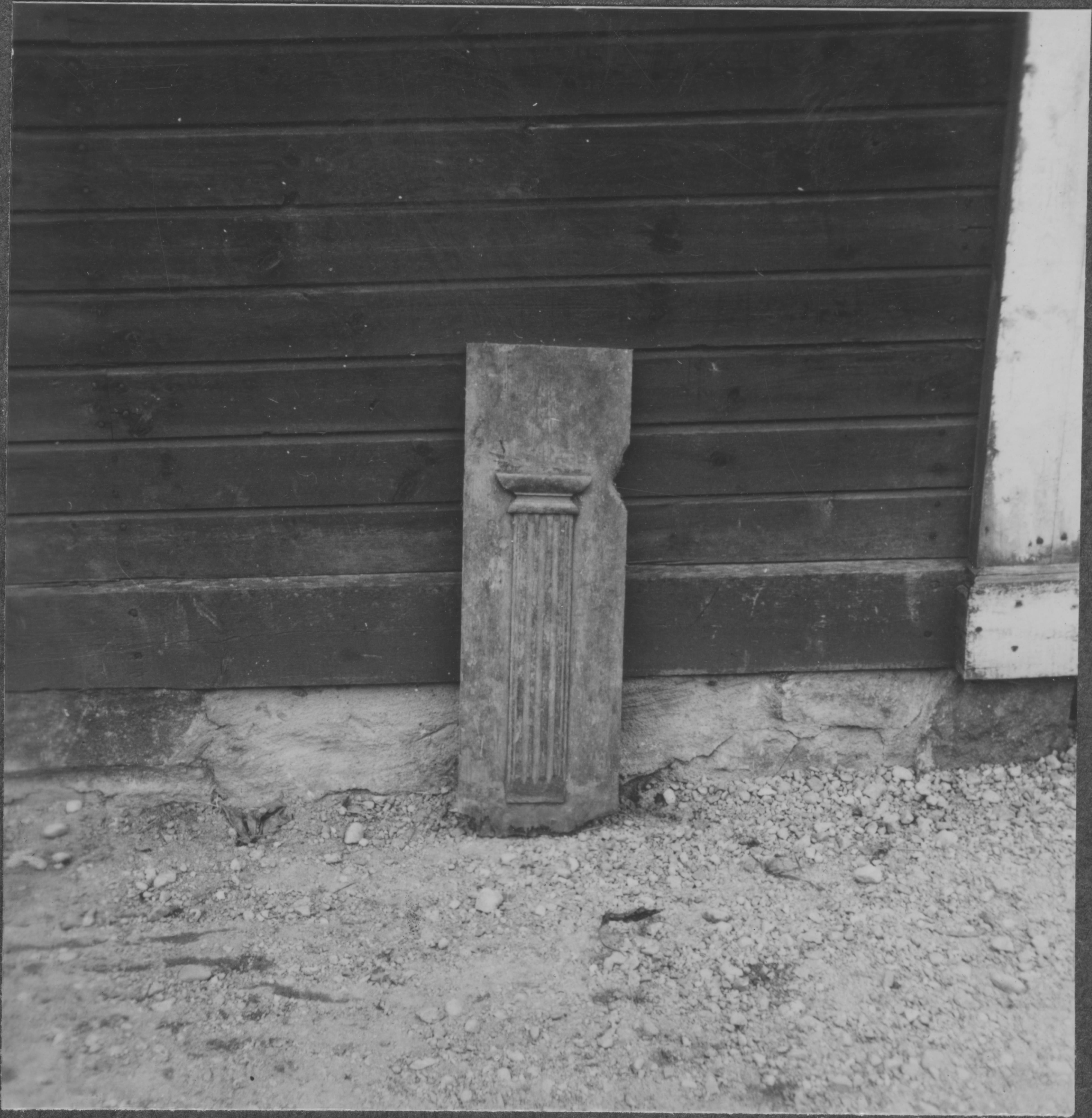 Beskrivning: Bänkdörr, antagligen från Drothems kyrka på Torstorp gård.
