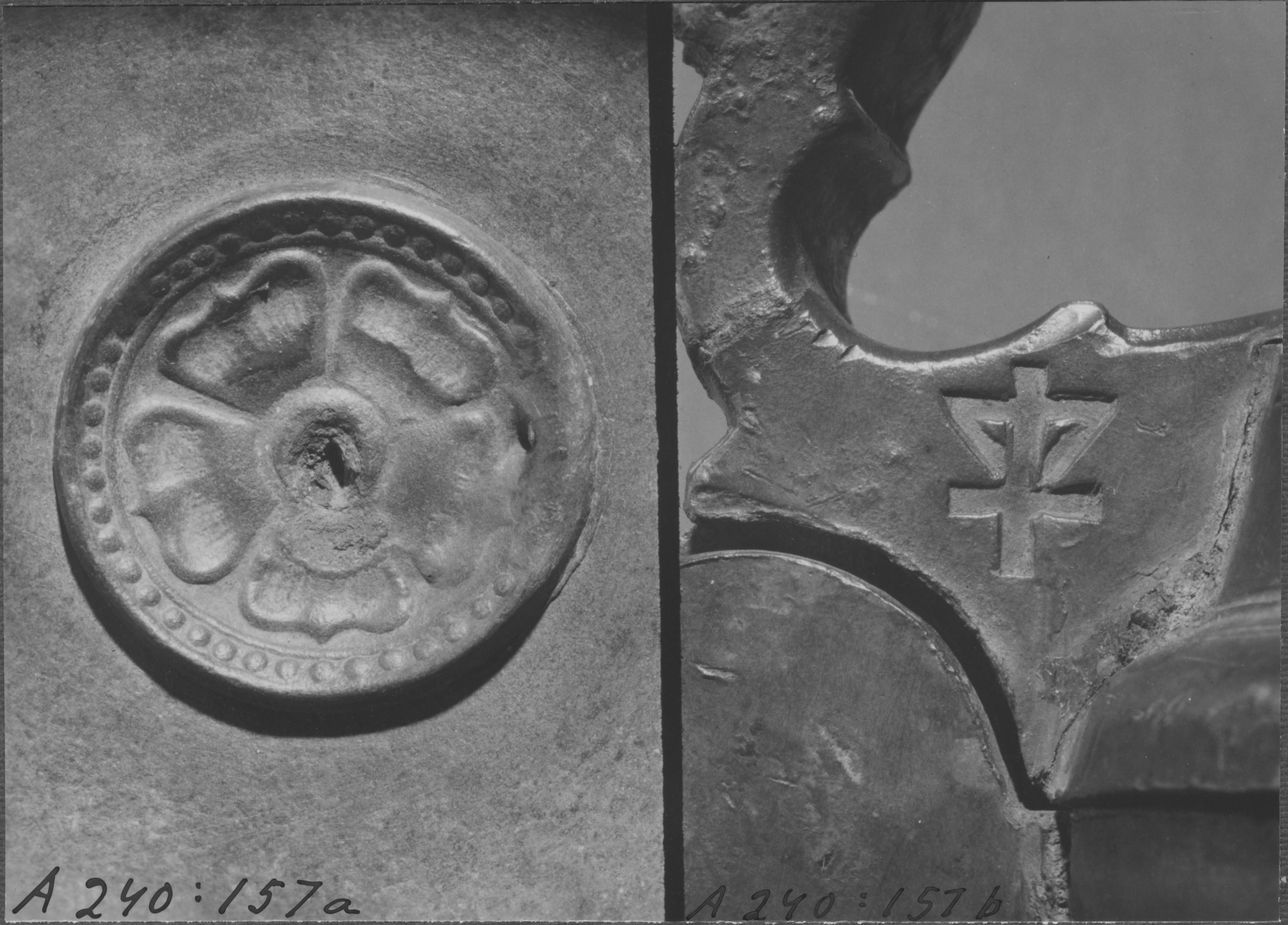 Beskrivning: Vinkanna av silver, detalj av handtag och stämpel.