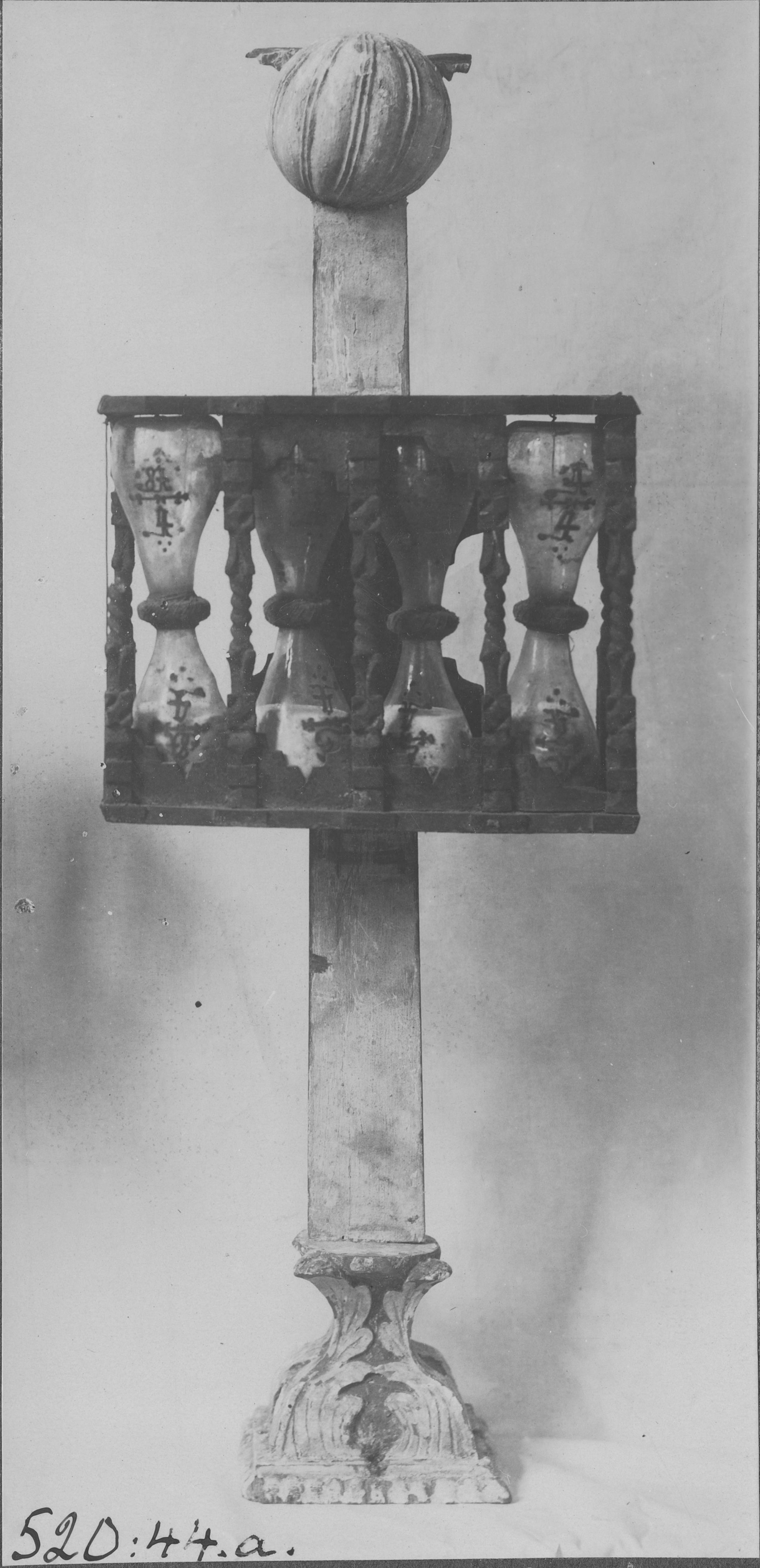 Beskrivning: Beskrivning: Timglas av trä och glas. 1600-tal-1700-tal.