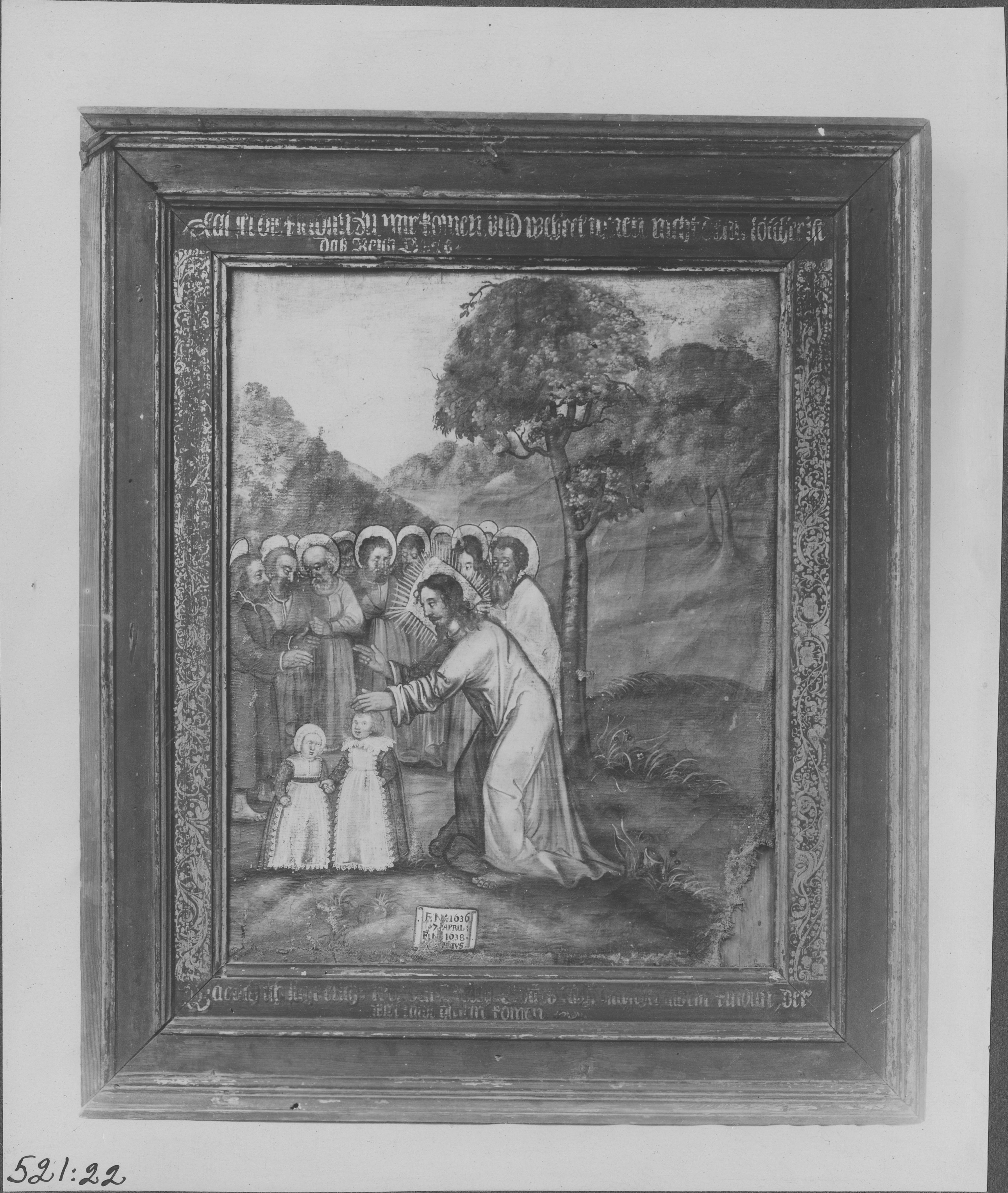 Beskrivning: Tavla föreställande Kristus välsignande barn. 1500-tal-1600-tal.