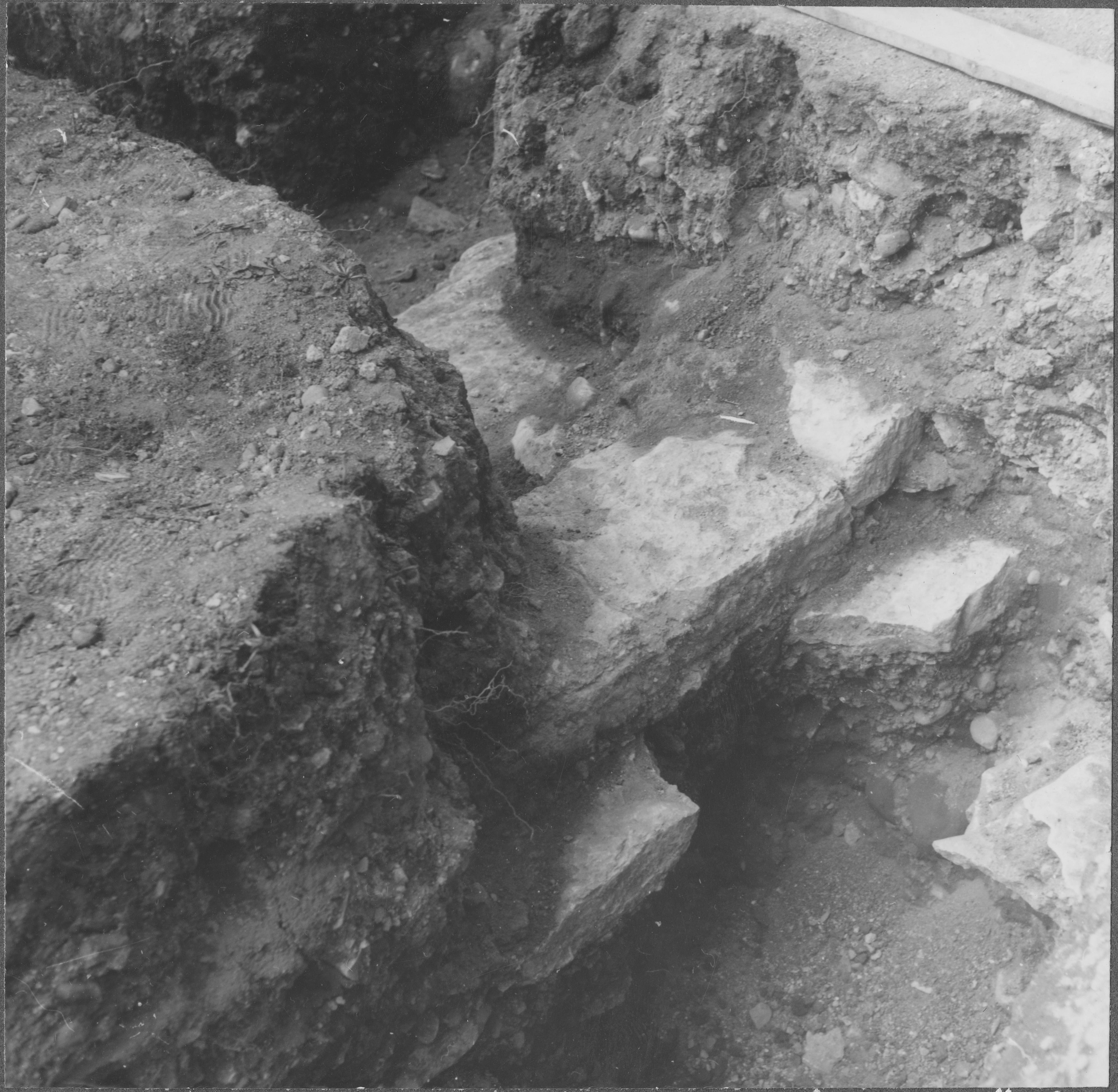 Beskrivning: Grundmur till vapenhus. Västmuren från sydost.