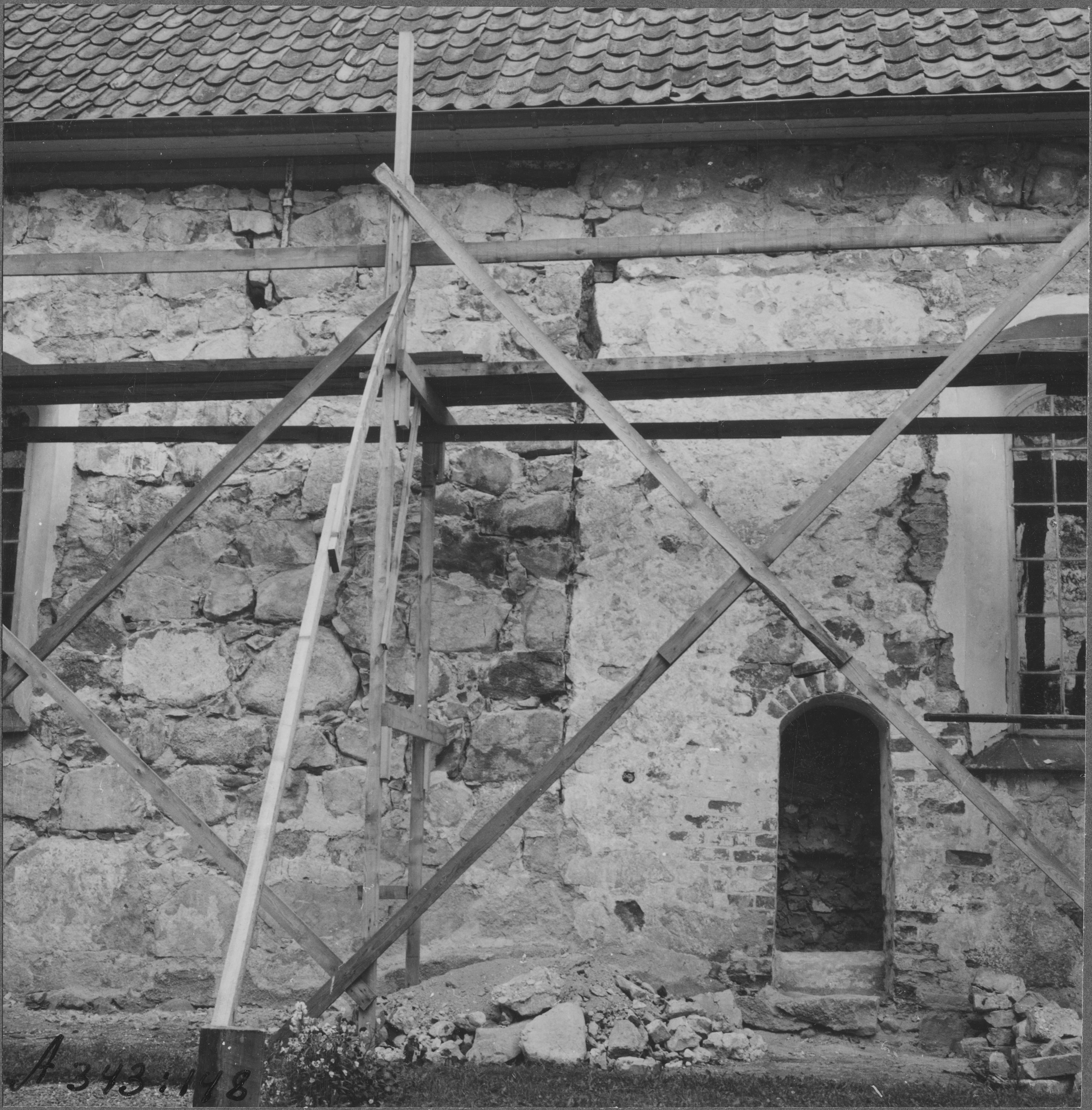 Beskrivning: Skarv mellan långhuset och koret. Södra fasaden.