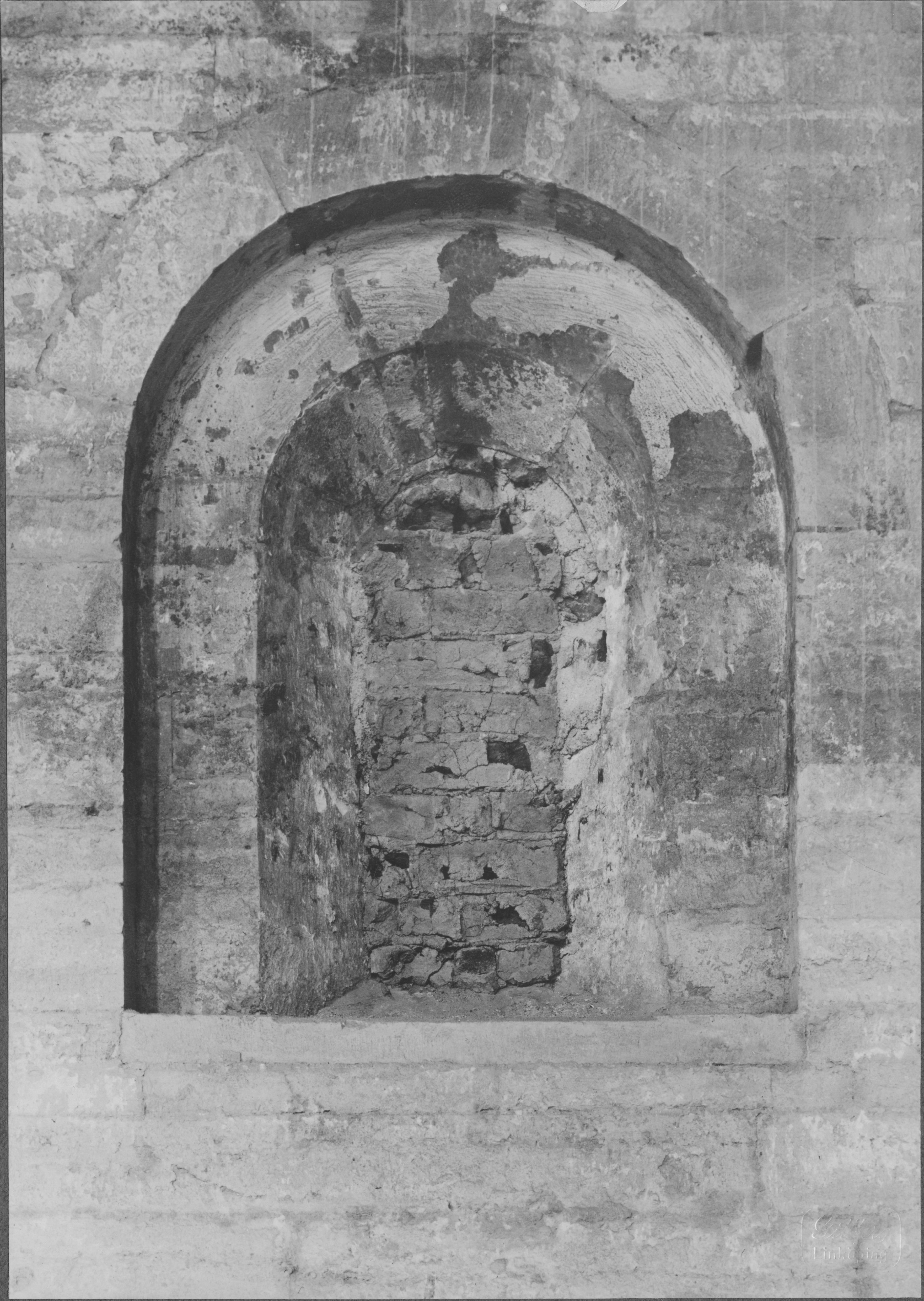 Beskrivning: Nisch i södra muren öster om korporten. Från norr.