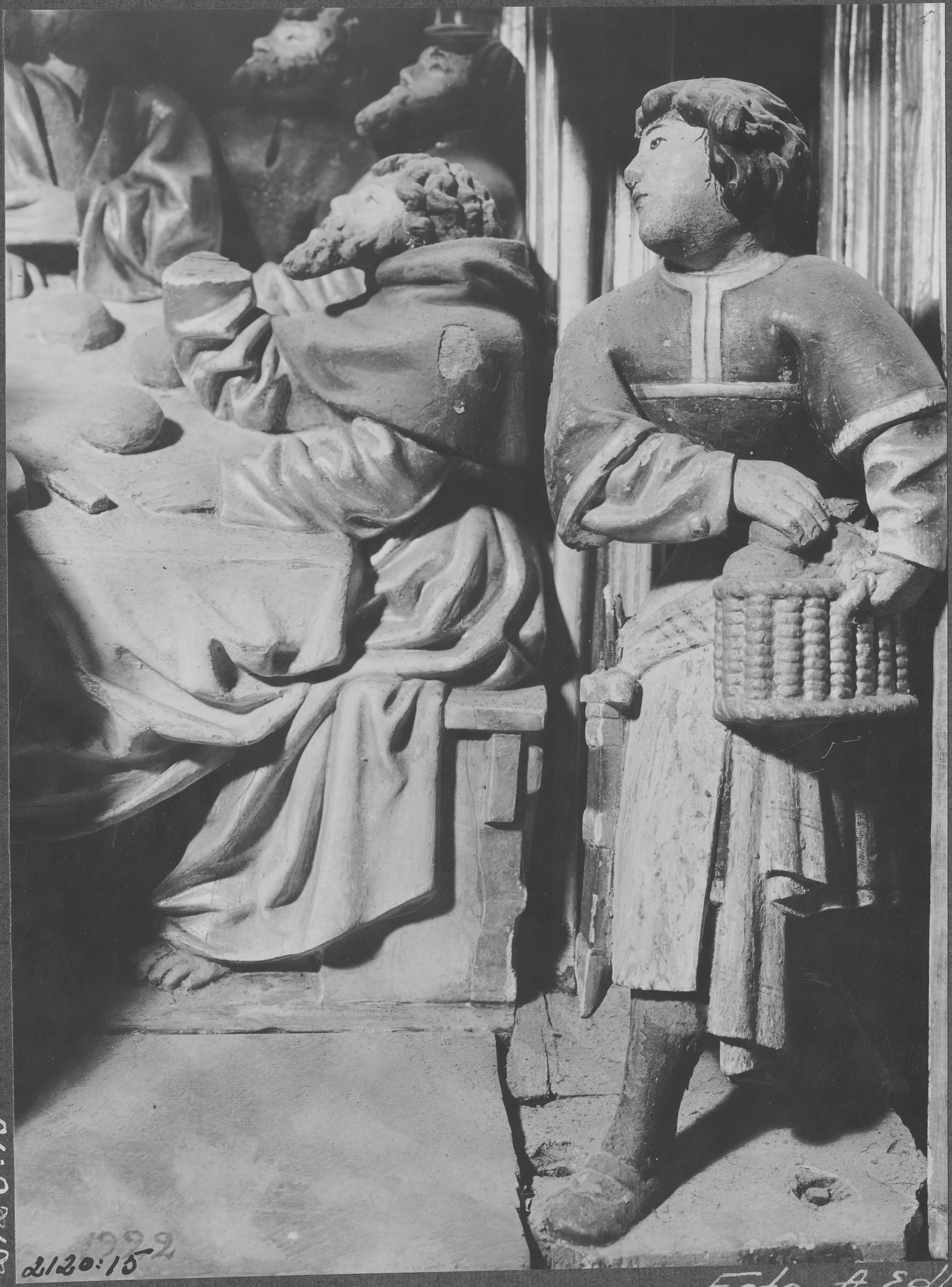 Beskrivning: Altarskåp av ek. Tillverkad i Brysselverkstad. Från 1500-talets första fjärdedel. Detalj, Nattvarden.