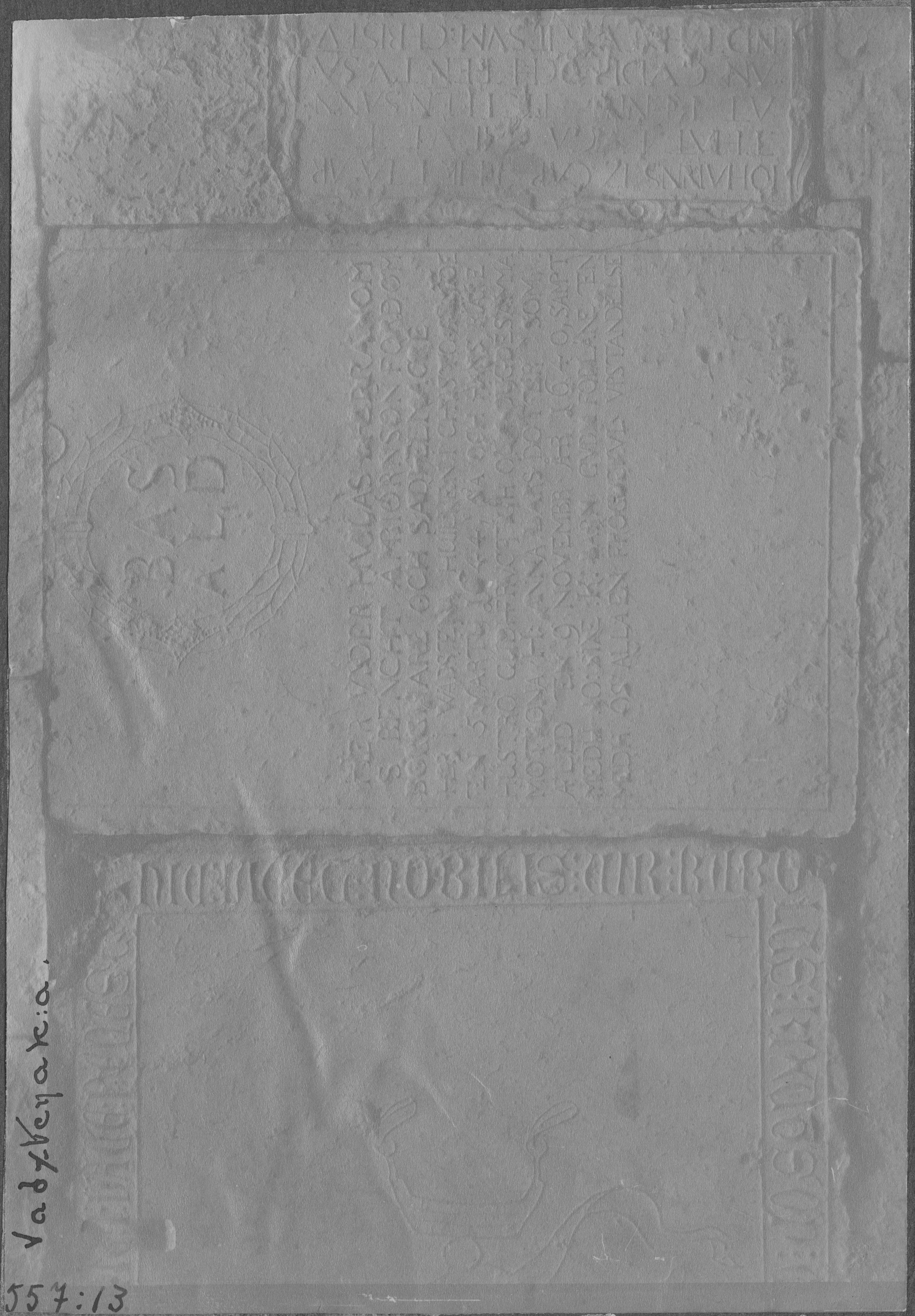 Beskrivning: Gravsten över Karl Knutsson och hans första gemål, till vänster på fotot. Norra gången.
