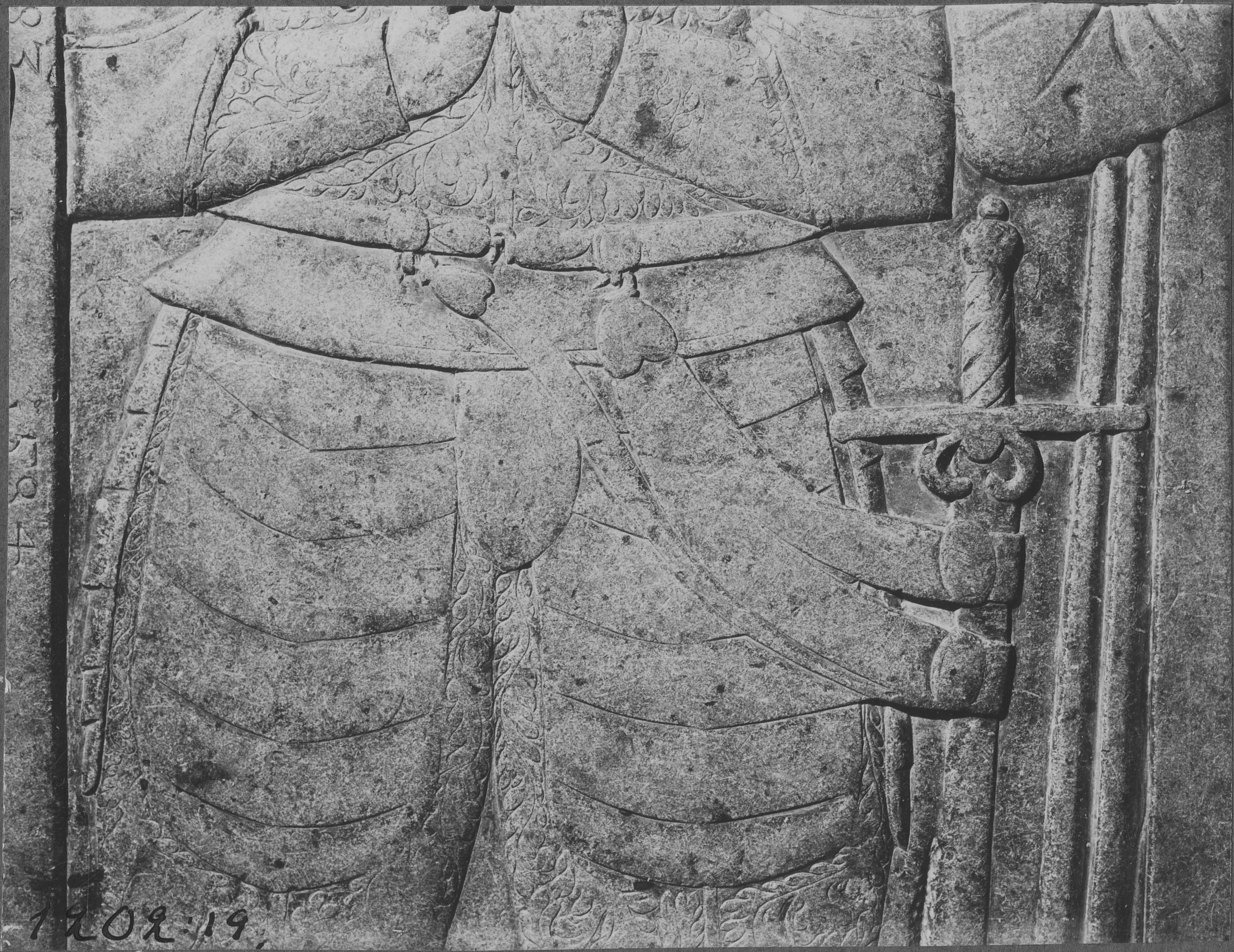 Beskrivning: Detalj av gravsten över Nils Nilsson Natt och Dag (d 1613) och Anna Bengtsdotter (d 1603).
